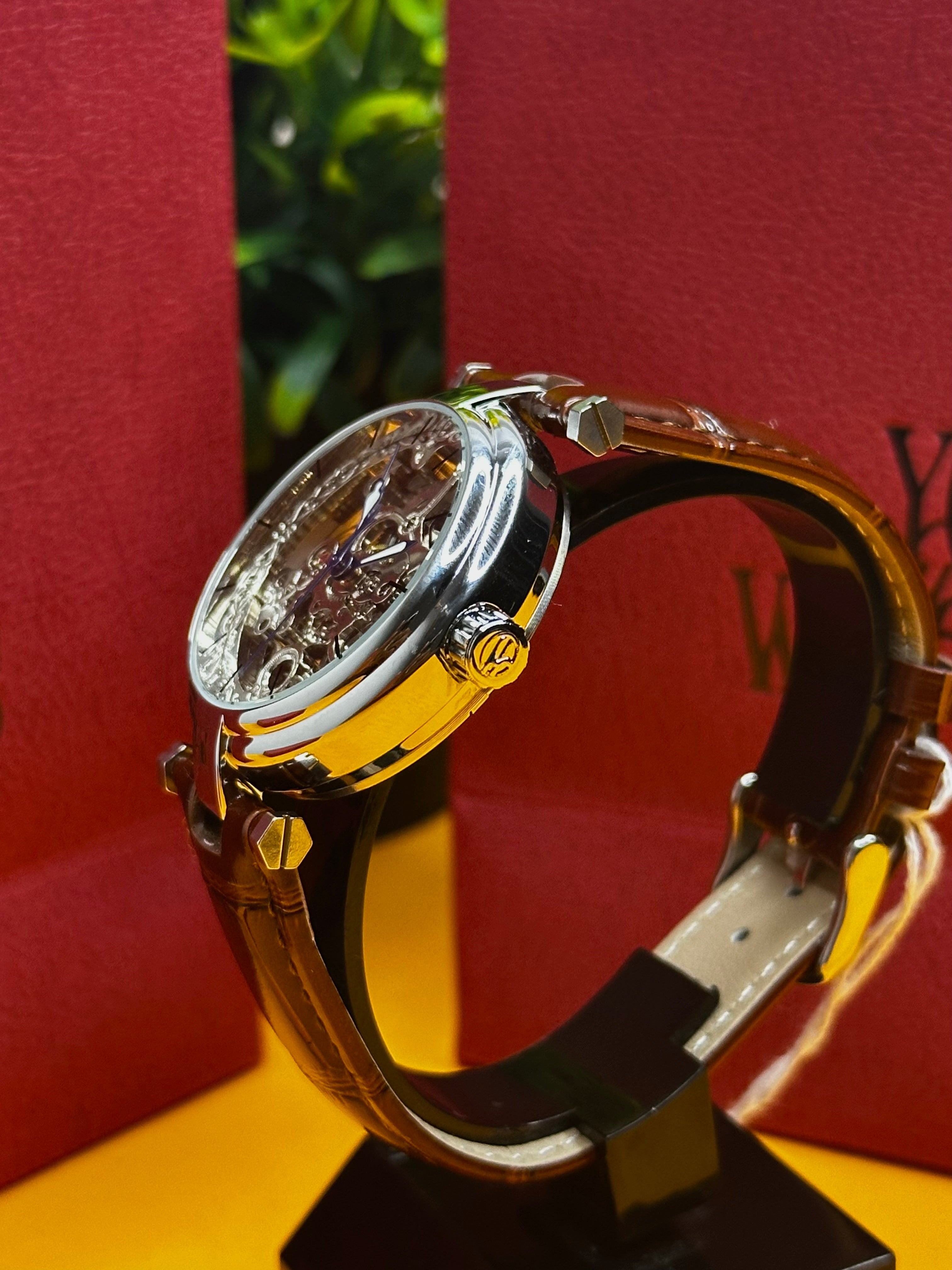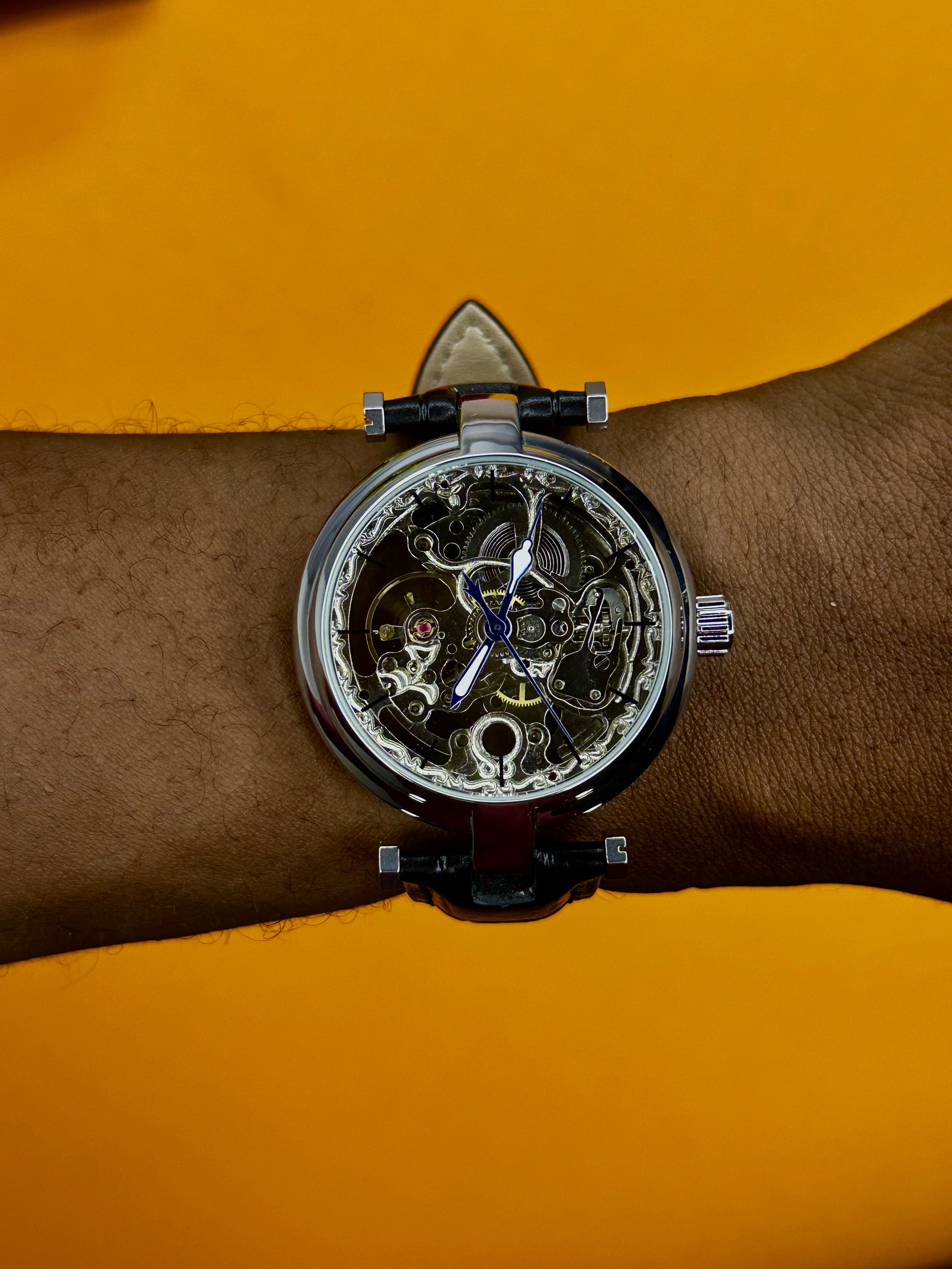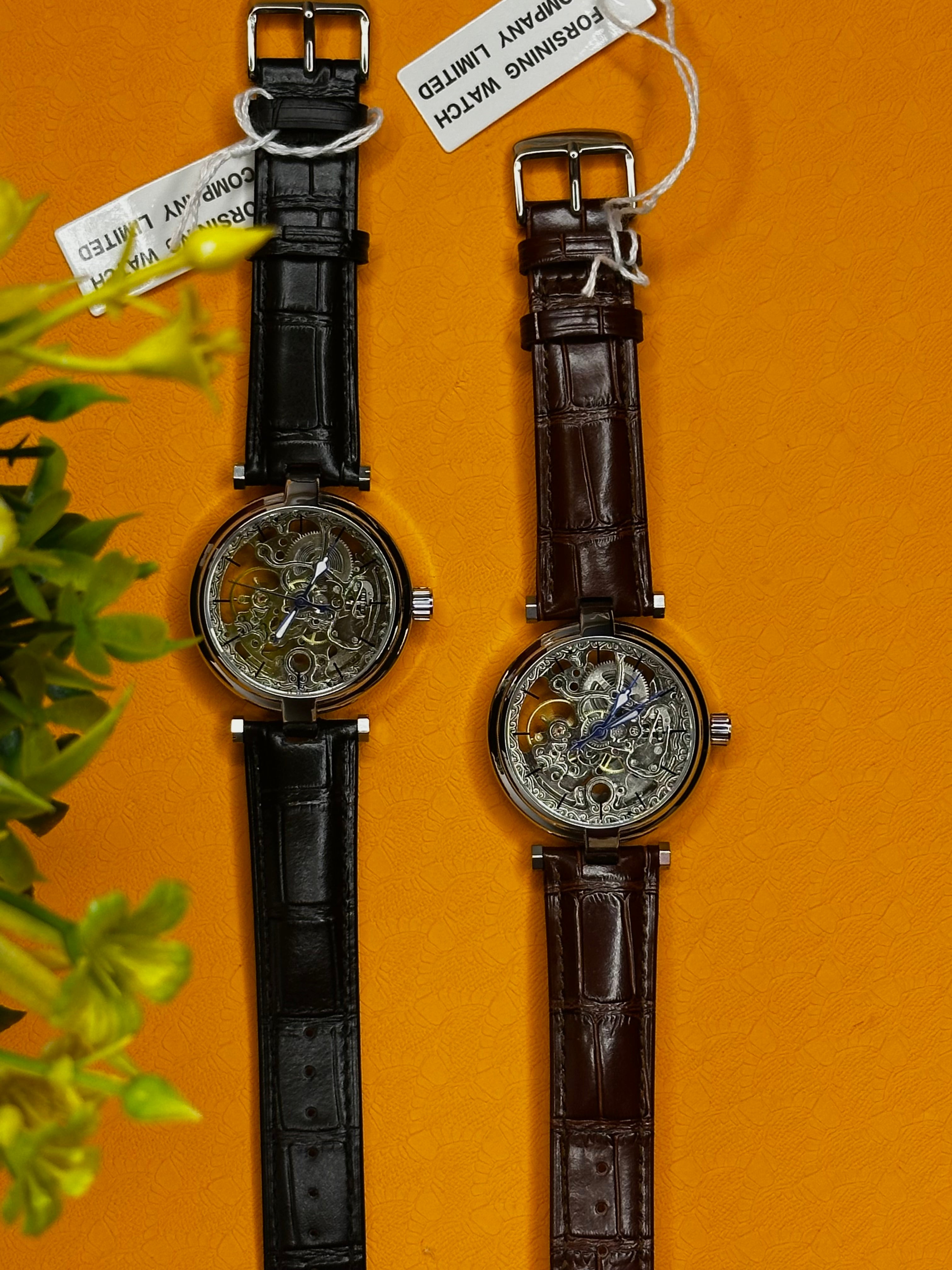 Disponible avec bracelet cuir noir ou marron, la Forsining Skeleton offre un excellent confort au quotidien. Le cuir apporte une touche élégante et masculine, tandis que le boîtier en acier poli renforce la robustesse et la durabilité de la montre. Elle s’accorde parfaitement avec une tenue professionnelle, chic ou casual.