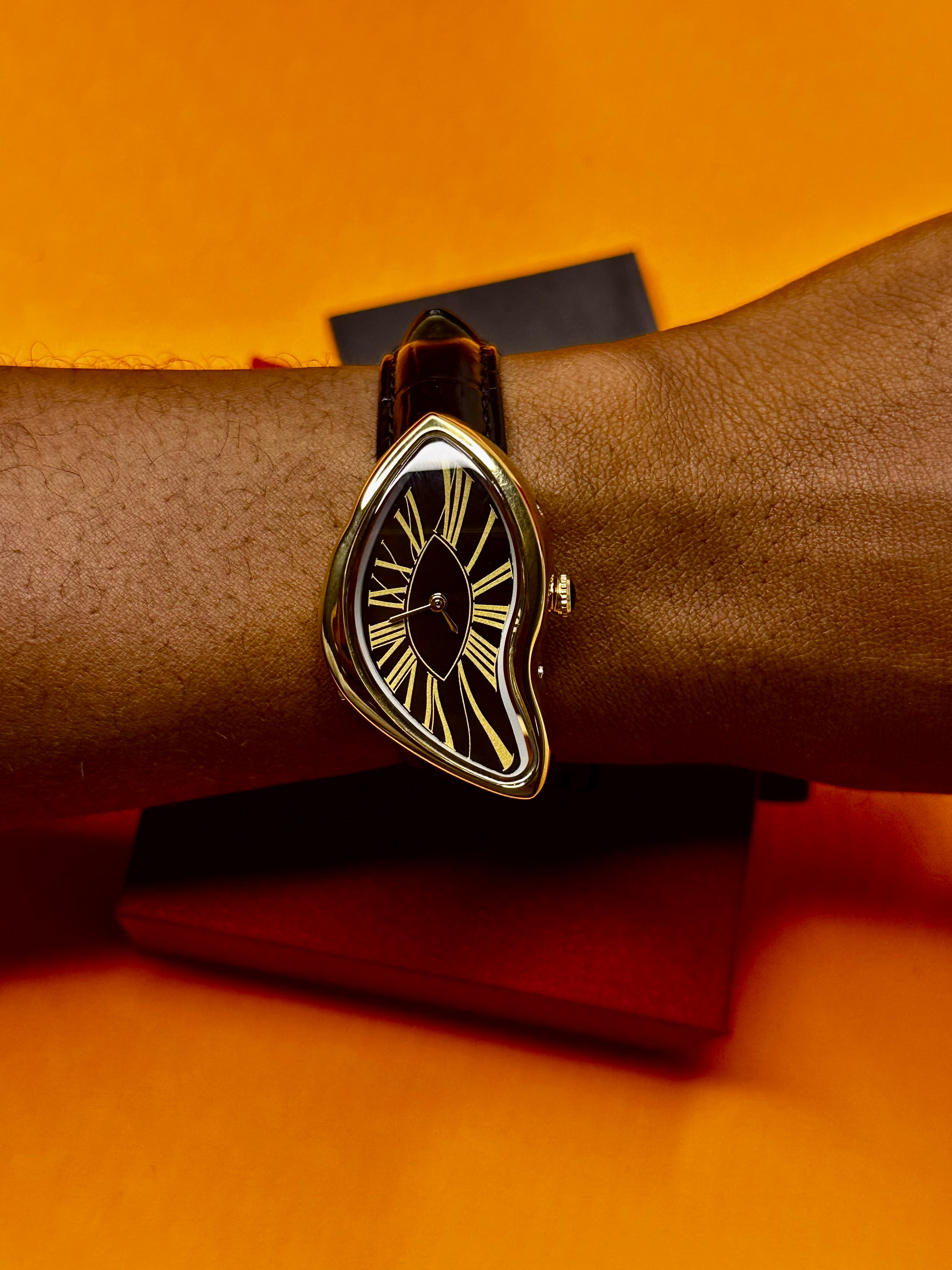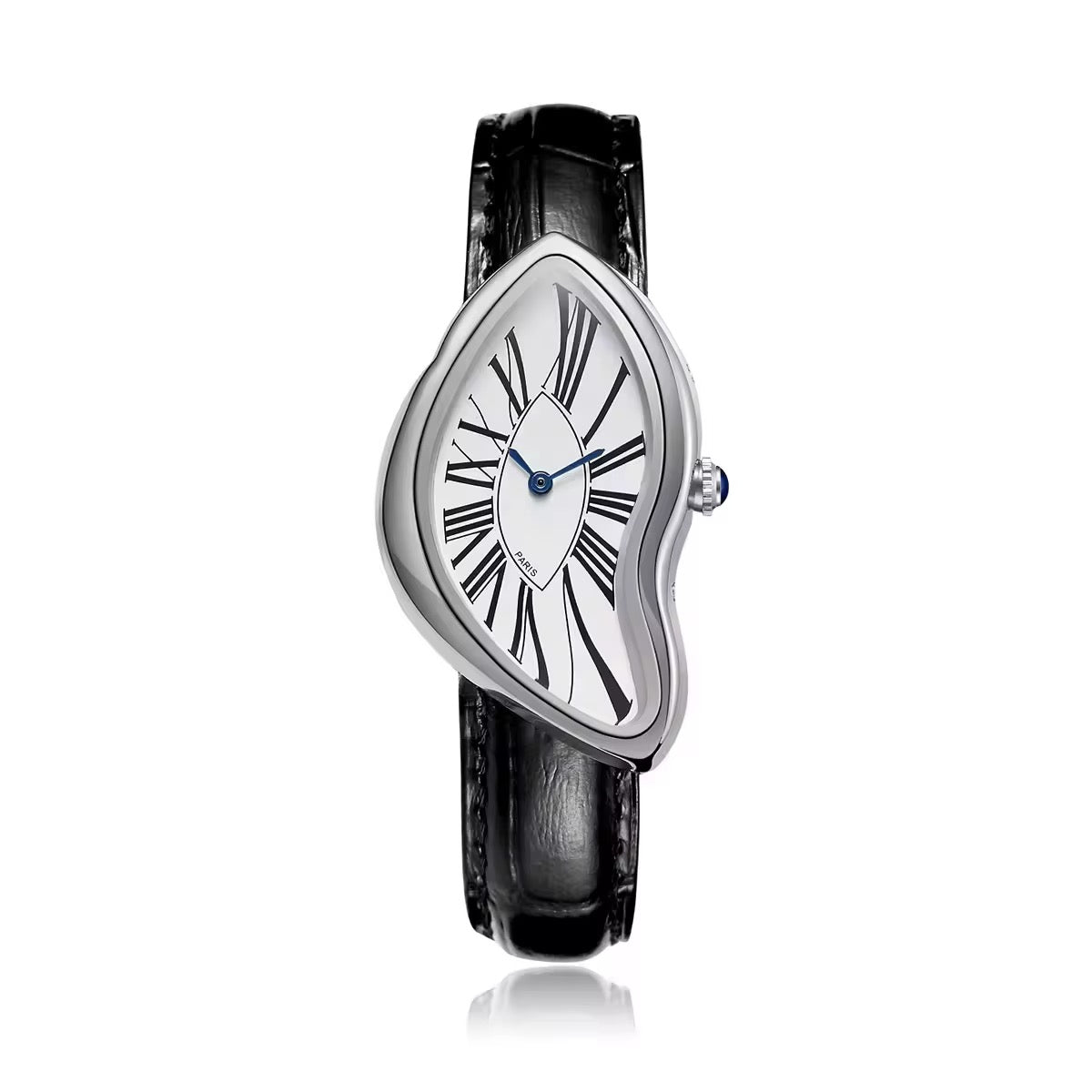 La Pintime Crash revisite l’un des designs les plus emblématiques de l’horlogerie : une forme déstructurée, courbée, presque fondue, qui attire instantanément l’œil. Inspirée du prestige Cartier “Crash”, elle en reprend l’ADN surréaliste et rebelle, tout en restant accessible, moderne et audacieuse.