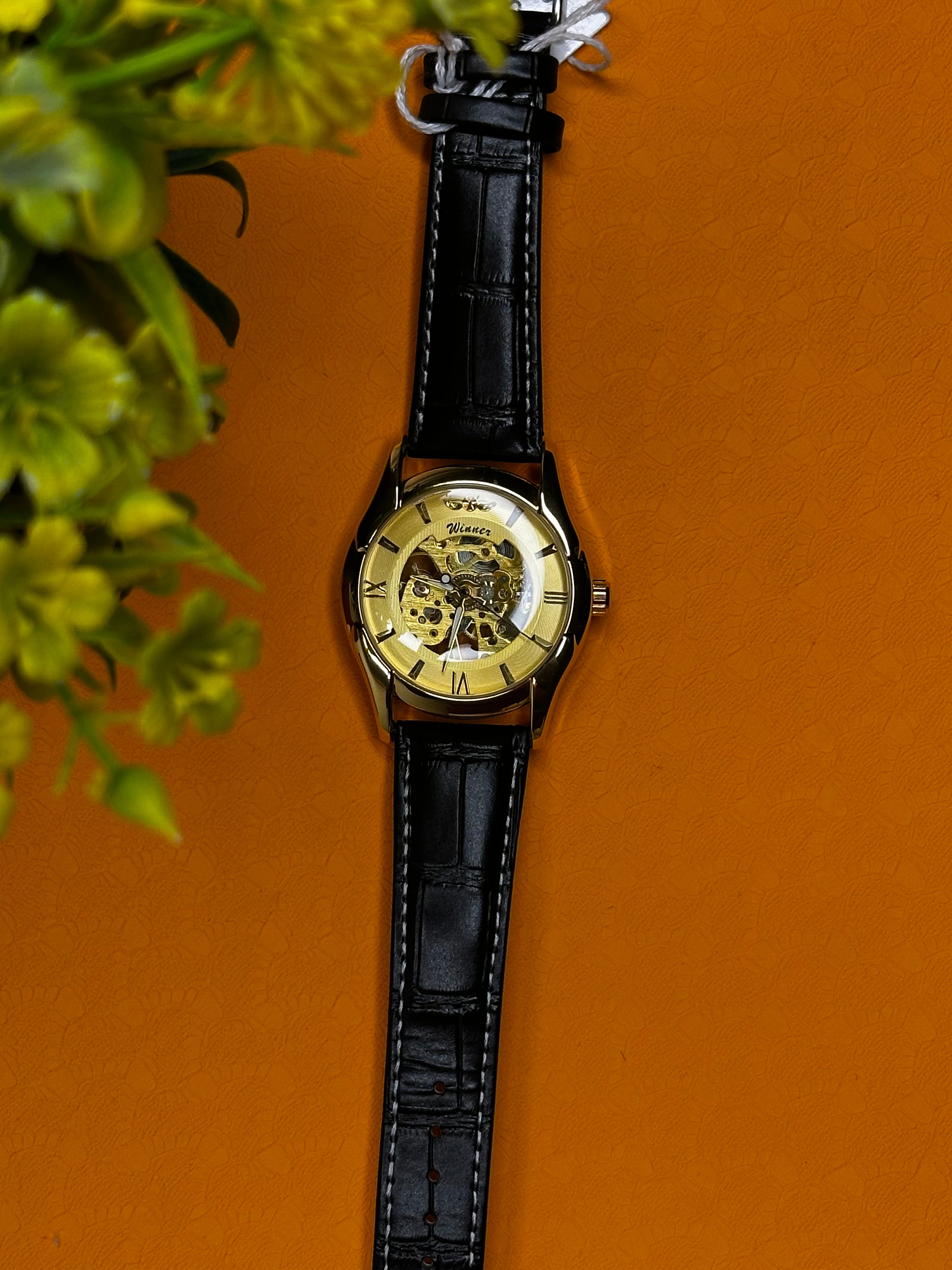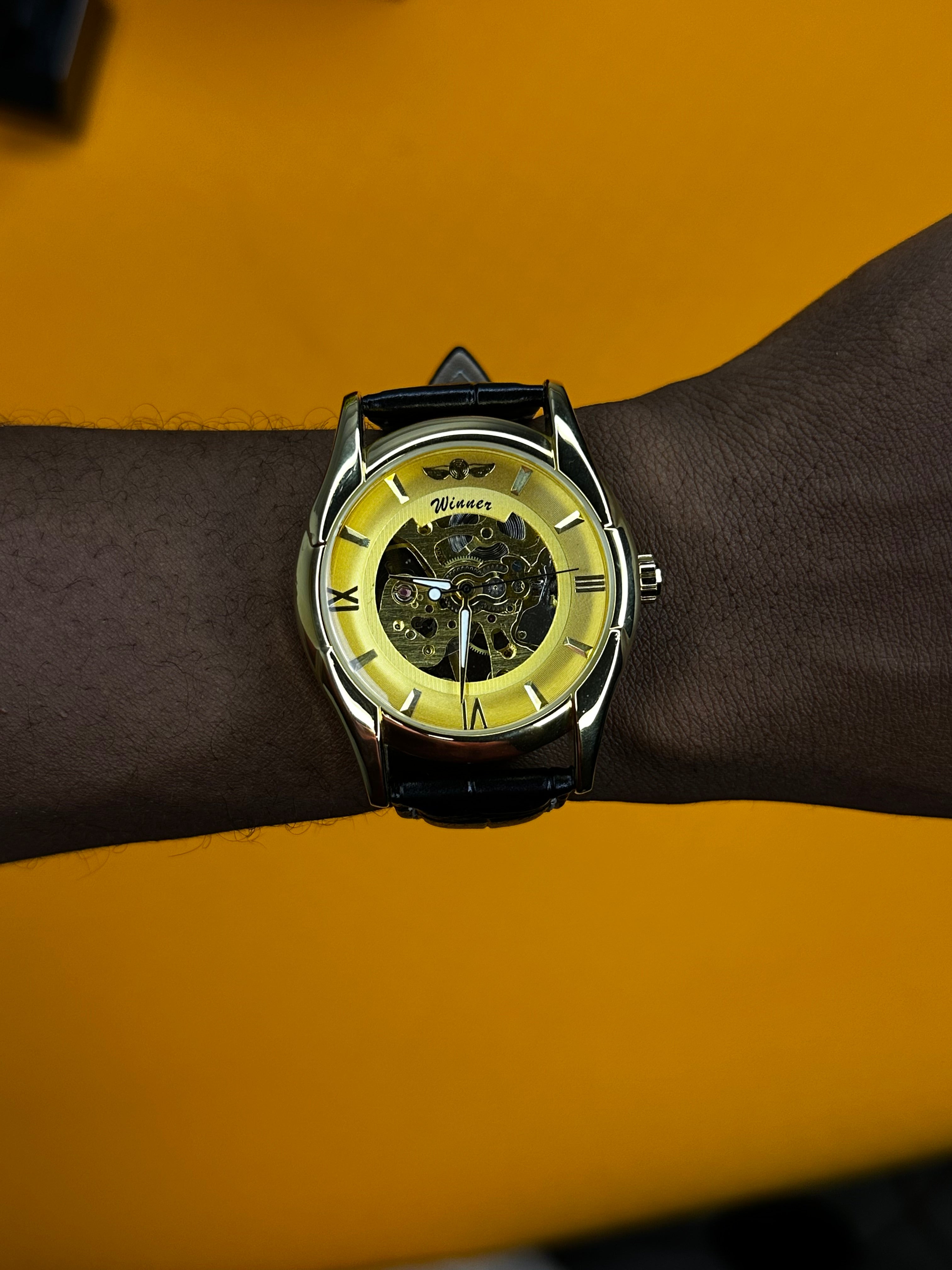 Animée par un mouvement mécanique automatique, la Winner Skeleton Classic fonctionne sans pile, uniquement grâce aux mouvements naturels du poignet. Le cœur de la montre bat à ciel ouvert, révélant engrenages et balancier avec précision.